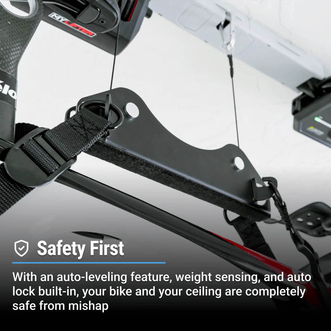 - Single-bike lifting frame and 2x 4' straps for bike storage